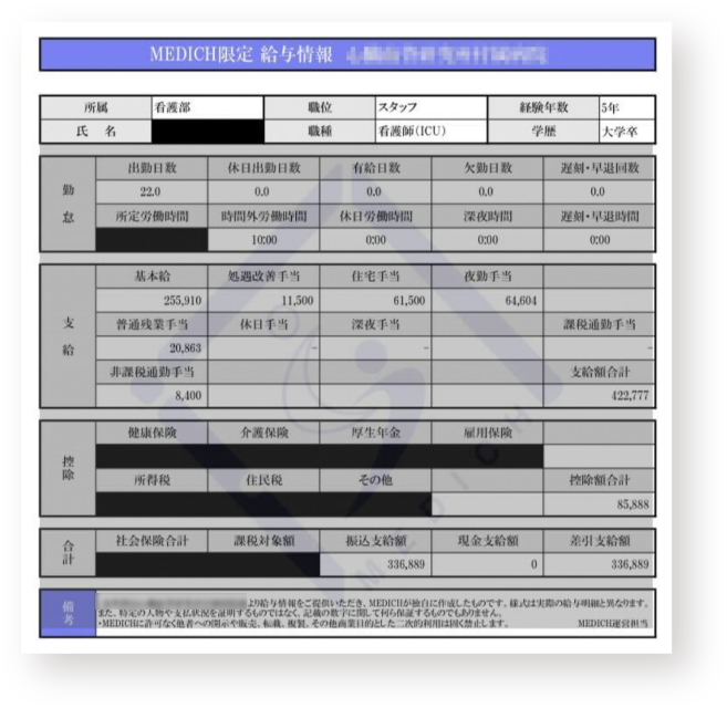 看護師の「非公開の給与明細」を